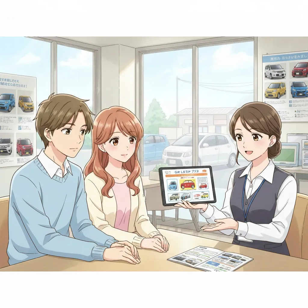 私たちの【賢いカープランニング】では、徹底したヒアリングを通じて理想の車を一緒に見つけます。新車・中古車販売、そして軽自動車に特化したカーリース「フラット7」など、お客様のライフスタイルやご予算に応じた最適な方法をご案内します。