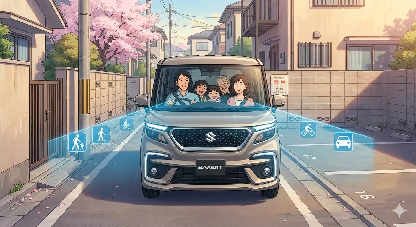 ✨ 2025年モデルのスズキ・バンディットで、日々のドライブに洗練された高級感をお届けします 🚗💨 重厚感ある「C字型」ラインのデザインは、小さな高級車の新定番 🌟 室内はボルドーとブラックを基調に、大人の品格が漂います 📏