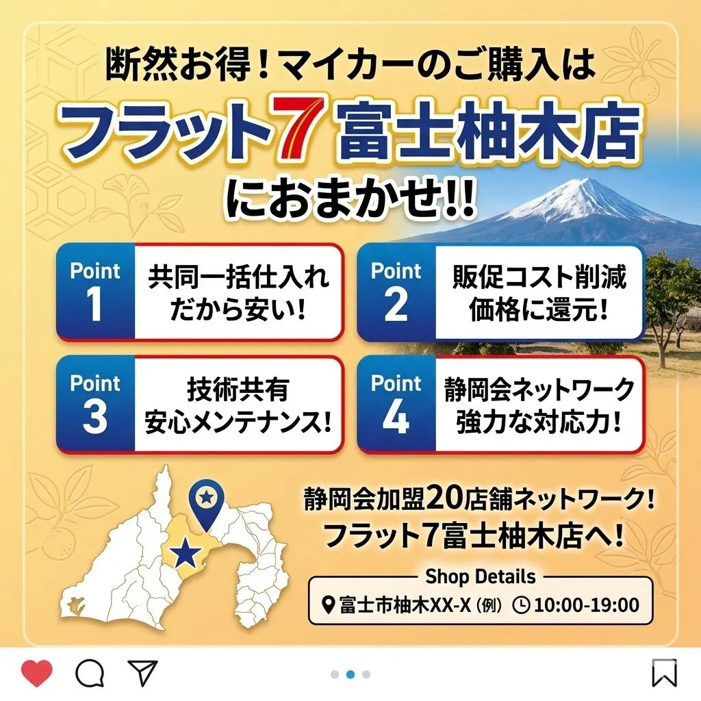 富士山の麓で愛車と永く安心して過ごしたい、そんな思いを持つあなたにぴったりなサポートを提供しています。私たちは、車の購入後も安心して乗り続けられるよう全力でサポートいたします🌟